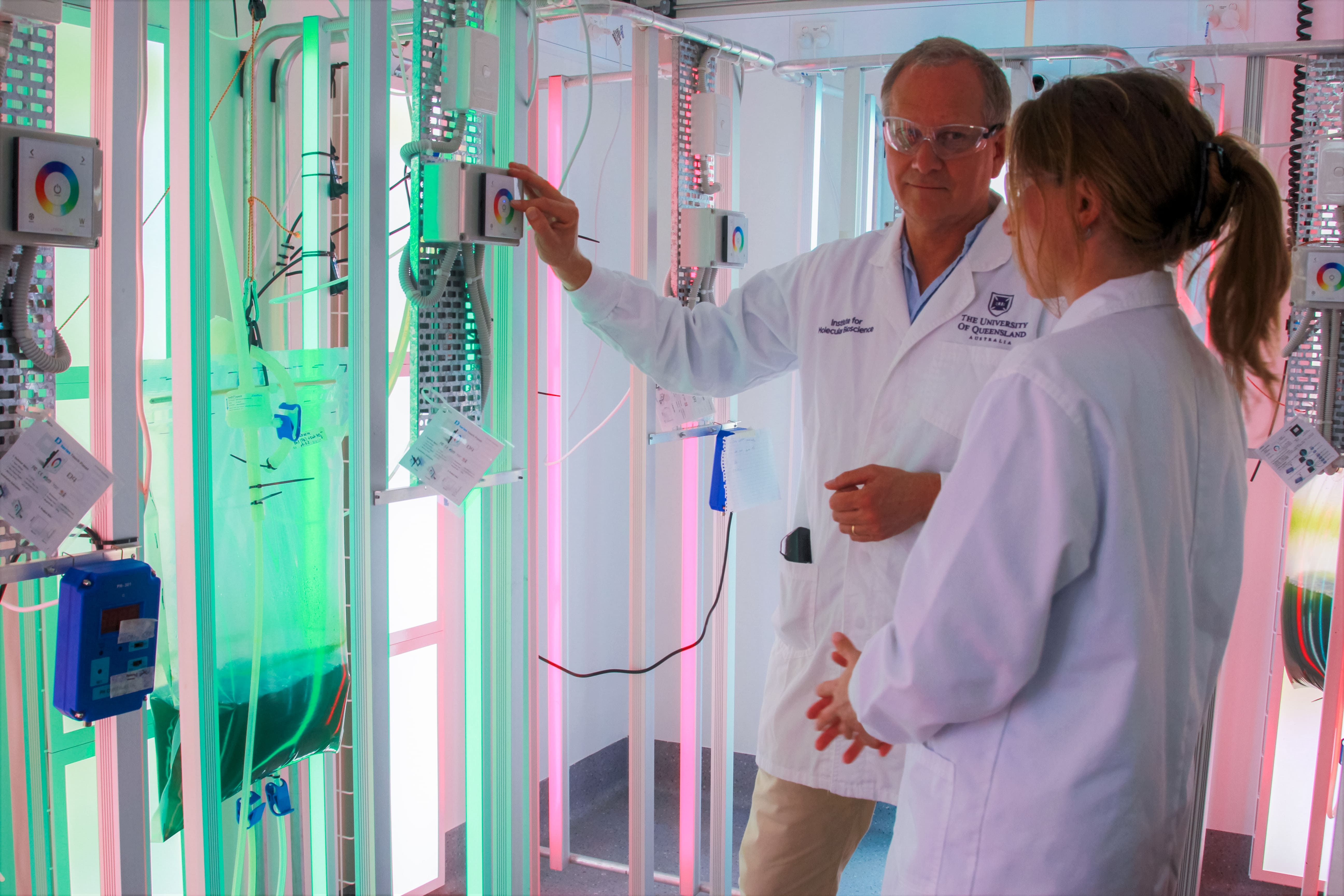 Green gold in the making. The Hankamer Group cultivates algae to create clean energy and sustainable products. Professor Ben Hankamer and Dr Juliane Wolf